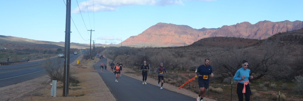 This race purpose is to get runners out of the cold and into the warmth of Southern Utah in the St. George/Santa Clara Area. Though the courses are primarily downhill over the distance there are some rollers and a few climbs. The views during this race are great with huge red rock mountains all around to views of Gunlock Reservoir during the Marathon and a nice river along the Full and Half Marathons.